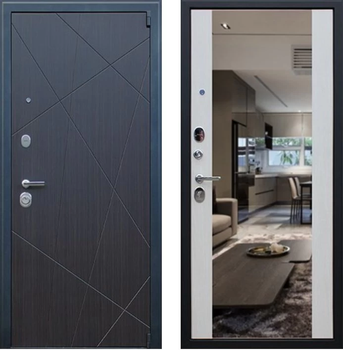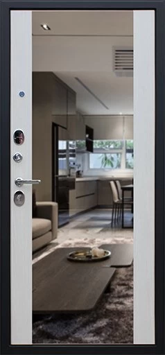 Надежная входная Дверь Вектор с зеркалом премиум класса по цене 49 017 руб. Большая толщина стали защитит от проникновения в ваш дом, квартиру или коттедж. Используется очень качественная фурнитура: замки, цилиндры, ручки, защелки. Покрытие и отделка двери изготовлено под внимательным контролем производителя. Дверь имеет долгий срок службы и гарантию.