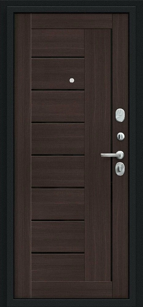 Надежная входная Дверь Браво Проф Букле черное/Wenge Veralinga премиум класса по цене 32 967 руб. Большая толщина стали защитит от проникновения в ваш дом, квартиру или коттедж. Используется очень качественная фурнитура: замки, цилиндры, ручки, защелки. Покрытие и отделка двери изготовлено под внимательным контролем производителя. Дверь имеет долгий срок службы и гарантию.